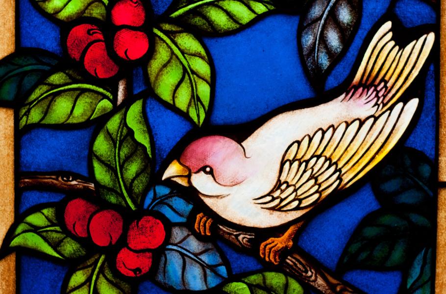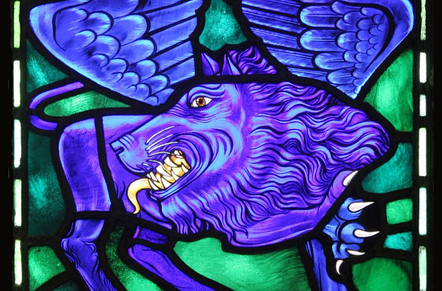 Symbol evangelisty svatého Marka. Okno z anglikánského kostela na ostrově Bermudy.