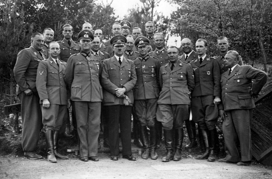 Adolf Hitler se členy svého štábu ve Vlčím doupěti někdy v letech 1940–1942. (foto: Wikimedia Commons, Bundesarchiv, Heinrich Hoffmann, CC-BY-SA 3.0)