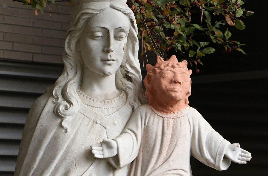 V parku u kostela v kanadském Greater Sudbury stojí socha Marie s Ježíšem, která má za sebou relativně dlouhou historii spojenou s vandalismem. Památka již byla poničena mnohokrát a z útoků obvykle vyšlo nejhůř Jezulátko, jehož hlava je malá a vyčnívá. Když ji v roce 2015 chuligáni urazili a ukradli, nabídla se místní umělkyně, že se o poškozenou skulpturu postará – a přímo na zející díru přilepila bizarní plastiku z keramické hlíny. Hlava tak ke zbytku těla neseděla barevně a obecně působila jako výjev z noční můry. „Oprava“ byla dokonce natolik šokující, že se lupič nakonec faráři přiznal a chybějící část sochy vrátil.