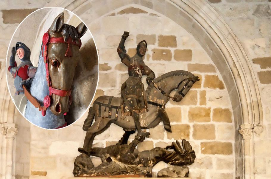 Kněz ve španělském městě Estella se rozhodl nechat opravit sochu sv. Jiří z 16. století, která světce tradičně zachycuje coby rytíře zápolícího s drakem. K práci na památce však nepřizval experty, nýbrž tamního učitele výtvarné výchovy. Když bylo dílo hotové, šel si boží služebník prohlédnout výsledek, jenž ho zaskočil: Pedagog totiž poměrně realistickou, avšak vybledlou plastiku pokryl zářivými barvami a z historické relikvie udělal něco, co ministerstvo kultury označilo za „děsivé“. Podle starosty navíc učitel zřejmě použil „nevhodné“ barvy a kvůli jeho zásahům už nepůjde obnovit původní vrstvy pigmentu.
