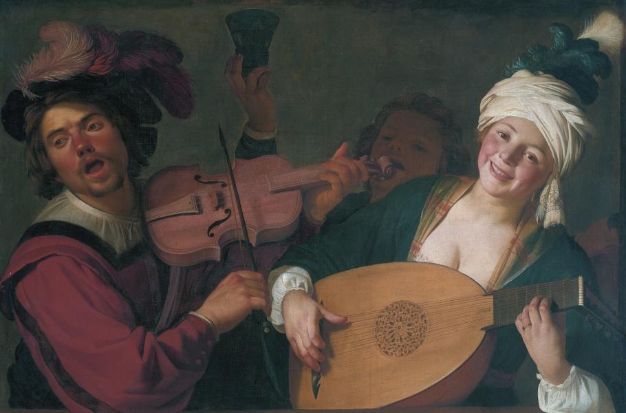 Renesanční hudebníci v podání nizozemského malíře Gerarda van Honthorsta. (ilustrace: Wikimedia Commons, Gerard van Honthorst, CC0)