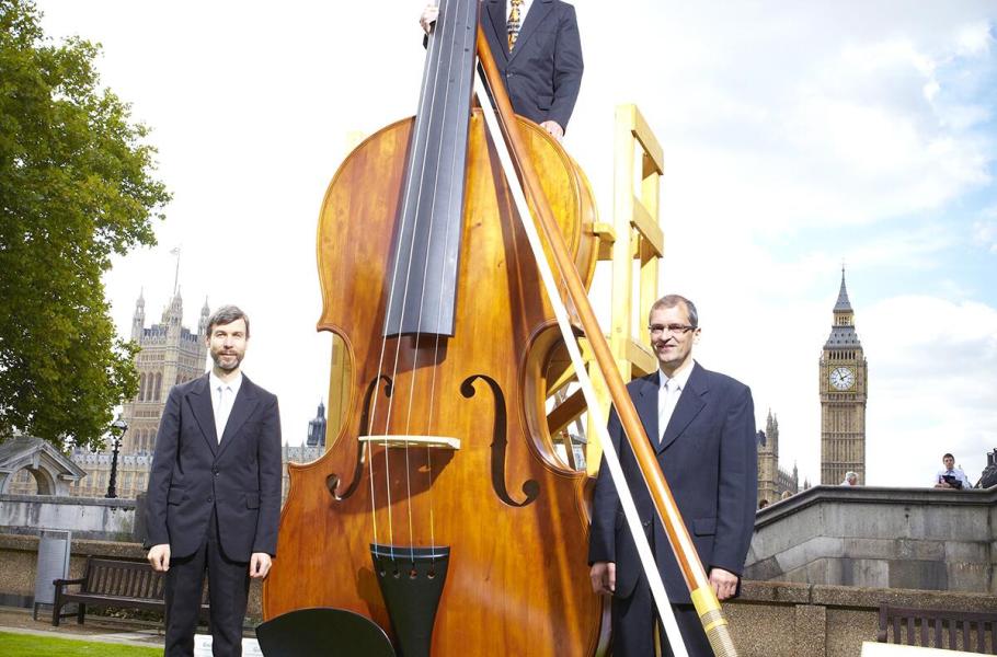 Obří sochy houslí zdobí nejedno místo planety, avšak vzhledem k jejich velikosti se na většinu z nich nedá hrát. Výjimku tvoří smyčcový nástroj z dílny Ekkarda Seidla z městečka Markneukirchen poblíž českých hranic. K výrobě největších houslí světa se německý loutnista rozhodl v roce 2010 při příležitosti 650. výročí založení obce a se skupinou kolegů sestavil nástroj o hmotnosti 130 kilogramů. Vzhledem k výšce 4,2 metru vyžaduje hra tři osoby: Jeden muzikant stojí na stupínku a mačká struny, zatímco dva další ovládají smyčec dlouhý 5,22 metru. Výroba rekordního giganta trvala dva tisíce hodin. (foto: Profimedia)
