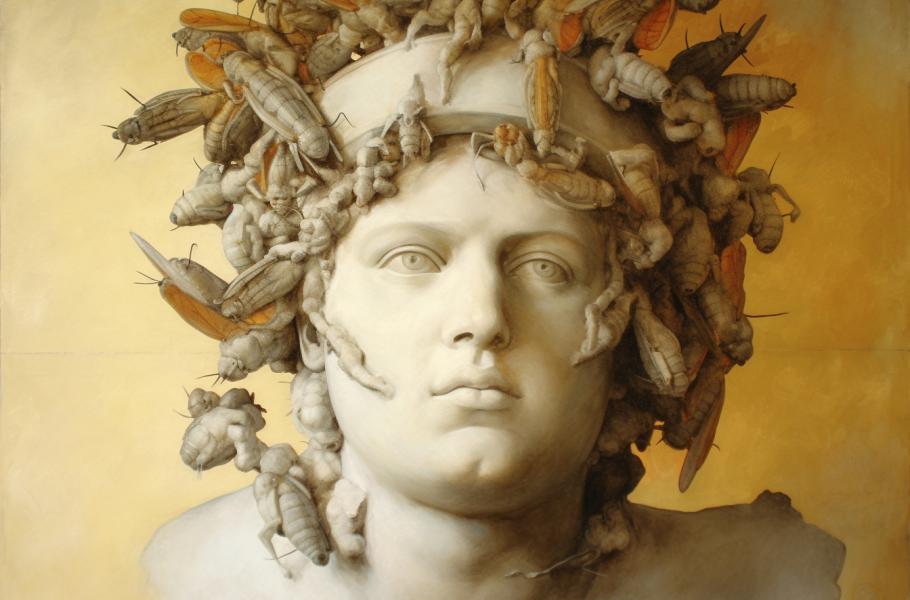 Mithridatés VI., zvaný Eupatór Dionýsos (132 př. n. l. – 63 př. n. l.), byl králem Pontu v 1. století př. n. l. (ilustrace: Midjourney AI, CC0)