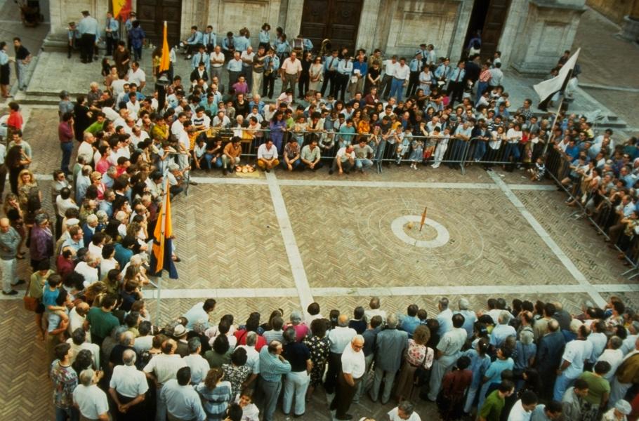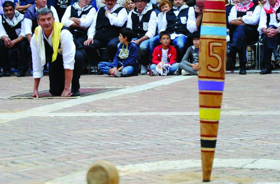 Přestože Pienza má jen 2 000 obyvatel a tísní se na kopečku dlouhém pouhých 400 metrů, je rozdělená na šest čtvrtí, jejichž obyvatelé si navzájem nemohou přijít na jméno. Každá má své symboly s kořeny sahajícími hluboko do středověku. A ty se při soutěži musí patřičně hrdě předvést. Rivalita je obrovská, a každá čtvrť proto pečlivě vybírá reprezentanty do svého týmu. Velký důraz se klade na přípravu dalších generací a kutálet se učí už malé děti, jak dokládá i Camilla: „Už jako malou mě to učil strýc nanečisto. A od sedmi let už trénuju přímo na opravdovém hřišti.“