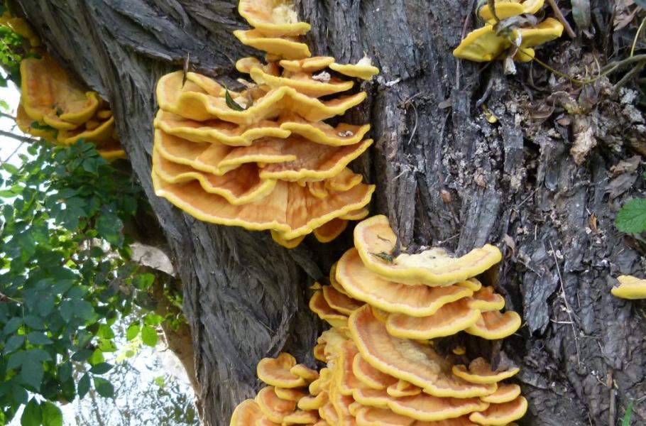 Pokud vás svět rostlin oslovuje víc než trpělivé hlídkování poštolek, od května až do října můžete na kmenech stromů objevit nepřehlédnutelný sírovec žlutooranžový (Laetiporus sulphureus). Je rozšířený po celém světě a já jej za teplého podzimu často nacházím především v říjnu například na pobřežních vrbách u řek na okraji Brna. Jednoletá dřevokazná houba z čeledi troudnacovitých připomíná roztažené vějíře nebo nařasený lem sukýnek kankánových tanečnic. Mladé plodnice jsou zbarveny jasně žlutě až žlutooranžově, spodní strana bývá sírově žlutá. V tomto období jsou jedlé. Stárnutím plodnice někdy bledne do krémova, jindy naopak tmavne.