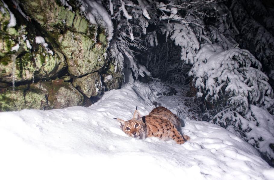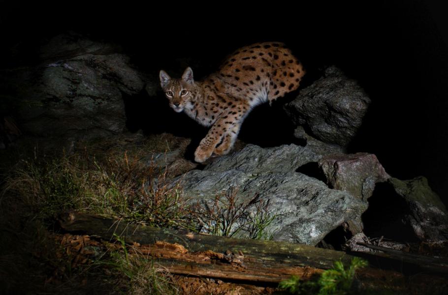 Jsem si vědom, že to bude znít dost pateticky, ale tímhle snímkem jsem si splnil obrovský sen. Je to můj vůbec první (a myslím si, že i celkově v ČR první) snímek divokého rysa ve vysokém rozlišení, pořízený za takovýchto unikátních podmínek. Na fotografii je mladý kocour, kterého jsem později identifikoval s přispěním organizace ALKA Wildlife, jež se monitoringem velkých šelem u nás dlouhodobě zabývá. Záběr je pořízen na konci období říje a kocour na něm právě označkoval jednu ze svých oblíbených skalek, aby tak dal na vědomí případným zájemkyním, že je přítomen a připraven. Pro mne je to zároveň okamžik, kdy se štěstí konečně unavilo… (foto: Vladimír Čech ml. - se souhlsem k publikování)