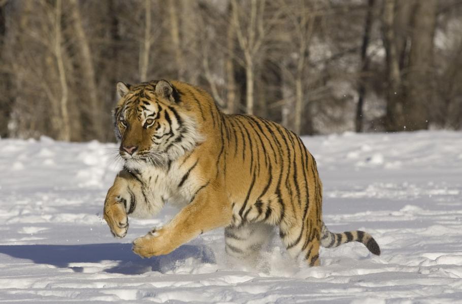 Ussurijští tygři mají velmi široké tlapy, což jim usnadňuje pohyb po sněhu. (foto: Shutterstock)