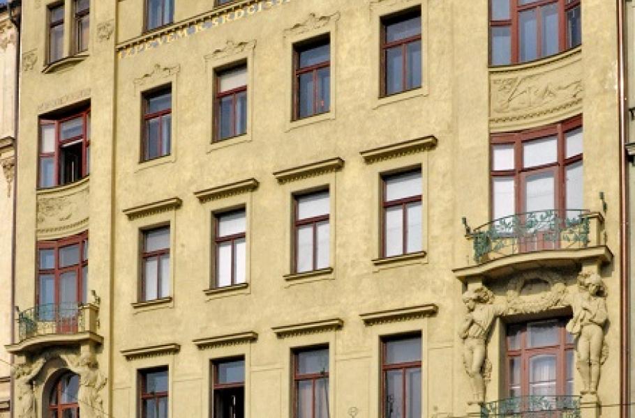 Spolkový a nájemní dvojdům Hlahol vznikl v letech 1904–1905 ve stylu rané secese podle plánů architekta Josefa Fanty a na jeho výzdobě se podílel i Alfons Mucha. Mezi předním a zadním traktem byla vestavěna přízemní koncertní síň. Adina se sem do třetího patra nastěhovala za války a její sousedkou o patro níž byla Hana Vítová.