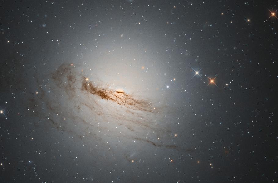 Čočková galaxie NGC 1947 přišla o většinu plynu a prachu, který dříve tvořil její spirální ramena. Jejich pozůstatky jsou sotva zřetelné, jak ukazuje nedávno pořízený a úchvatný snímek galaxie Hubbleova vesmírného dalekohledu.
