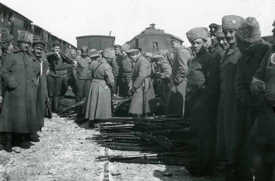 Na nádraží v Penze legionáři odevzdávali většinu výzbroje, mohli si nechat jednu pušku na deset mužů. (foto: Wikimedia Commons, PDM 1.0)