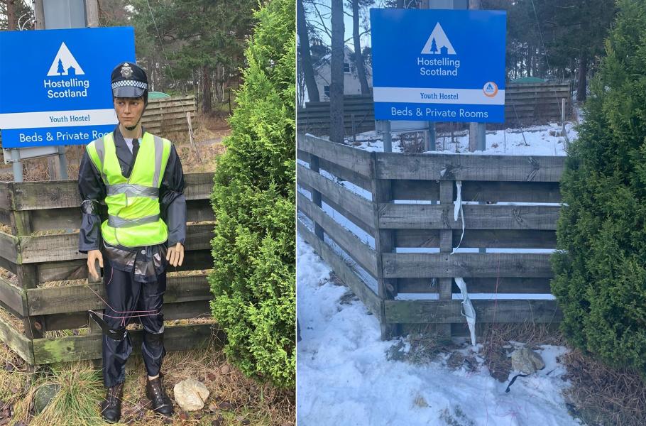 Neznámí vandalové unesli ze skotské vesnice falešného policistu. Občané teď zločince prosí, aby jim figurínu vrátili