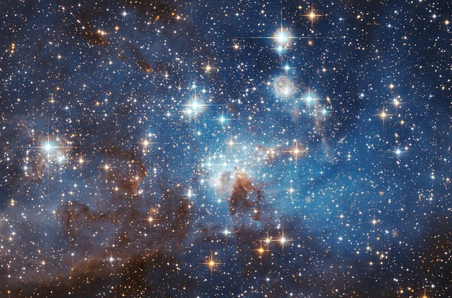 Chybějící běžnou hmotu vesmíru pravděpodobně tvoří nesmírně řídce rozptýlený vodík, který obklopuje galaxie. Na snímku mračna vodíku ve hvězdné porodnici LH 95 Velkého Magellanova oblaku. (foto: Wikimedia Commons, NASA, ESA, Hubble, CC BY-SA 4.0)