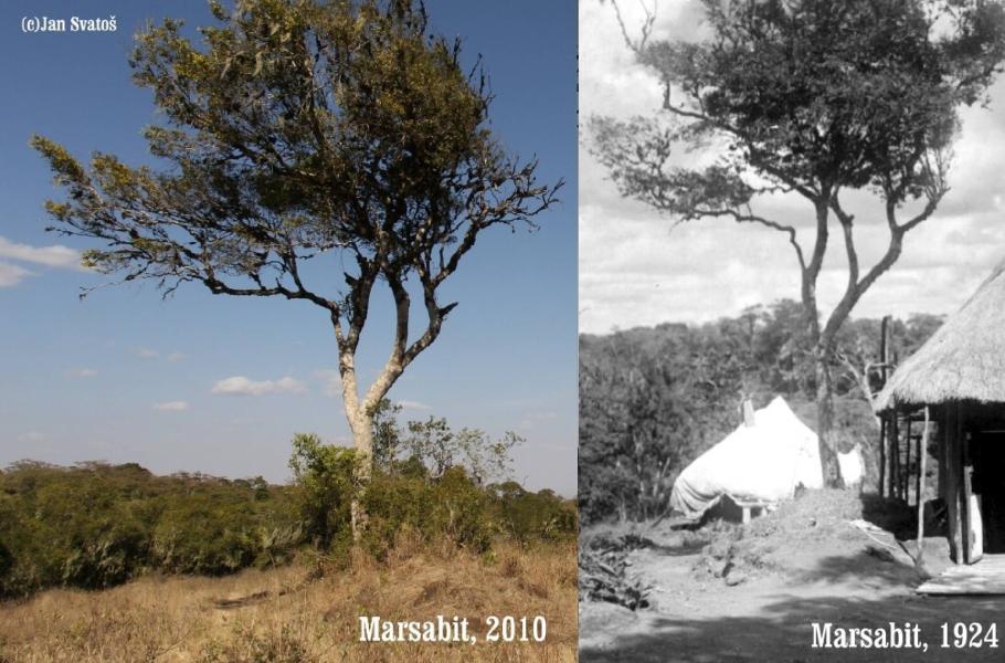 K nejcennějšímu objevu však došlo v poslední dny natáčení. Uprostřed mýtiny stál pozoruhodný strom, který mne upoutal svým tvarem. Později při opětovném listování starými fotografiemi jsem si všiml neuvěřitelné věci – jeho tvar přesně odpovídal stromu, vedle něhož stála na fotografii Johnsonova temná komora. Nyní byl samozřejmě mohutnější, ale jeho tvar a rozložení větví bylo stejné jako před 90 lety! Stál na otevřeném prostranství, kde jej neúnavně bičoval východní vítr. Díky skutečnosti, že stromy ve zdejších zeměpisných šířkách rostou na rozdíl např. od českých smrků velmi pomalu, mohli jsme porovnáním prokázat platnost našeho objevu – Martinova komora byla poprvé od jeho odjezdu z Marsabitu znovu objevena!