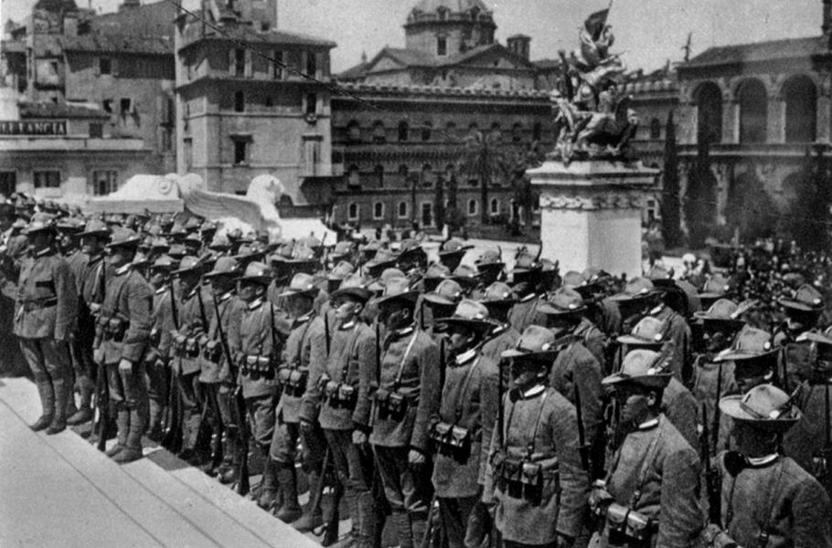 Slavnostní nástup československých legionářů v květnu 1918, charakteristickou součástí jejich uniforem byly typické alpinské klobouky… (ilustrační foto: VÚA–VHA, CC BY 4.0)