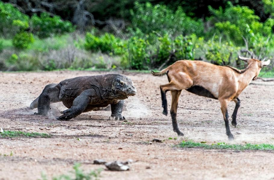 Varani sice působí lenivě a ležérně, ale dokáží být velmi mrštní a rychlí. Dokazují to ostatně i snímky ruské fotografky Julie Sundukové. Dvojice varanů z indonéského národního parku Komodo, nedala své kořisti sebemenší šanci.