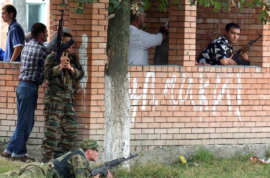 Během slavnostního zahájení školního roku 1. září 2004 vniklo do školní budovy v Beslanu v Severokavkazské oblasti Ruska 32 čečenských muslimských radikálů. Jako rukojmí zadrželi přes 1 100 osob, z toho 777 dětí. Ruské úřady ve snaze snížit paniku vypustili do médií údaje o výrazně nižších počtech rukojmích. Většinu zadržených únosci uvěznili v tělocvičně. Při transportu asi 20 mužů, které teroristé vyhodnotili jako potenciálně nebezpečné, jedné ze členek skupiny náhodně explodoval sebevražedný pás a usmrtil několik osob.
