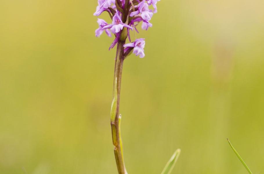 Mezi atraktivní druhy orchidejí patří i vstavač osmahlý (Orchis ustulata). (foto: Pavel Krásenský + Wikimedia Commons, Petr Vodička, CC BY-SA 4.0)