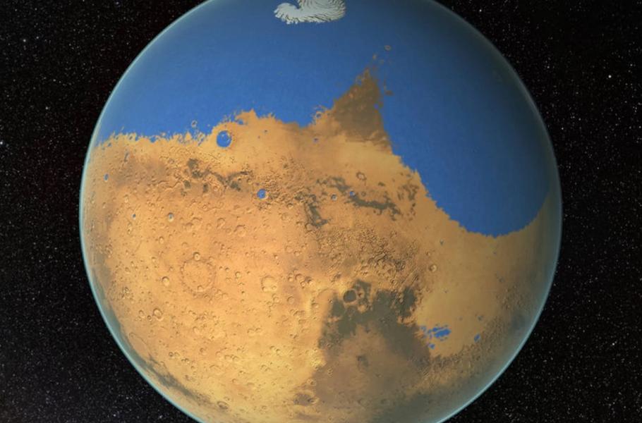 Na jižní polokouli Marsu je v létě mnohem tepleji a vodní pára tam může unikat do horních vrstev atmosféry, odkud část vodíku mizí do vesmíru