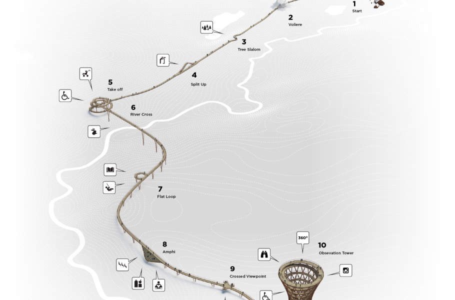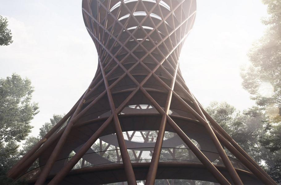 Uznávané architektonické studio EFFEKT zveřejnilo plány na vybudování pozoruhodné 600 metrů dlouhé lávky, která se má vinout nad korunami stromů v dánském Haslevu. Lávka spojená s 360° rozhlednou ve tvaru přesýpacích hodin má být 45 metrů vysoká, vyrobená ze dřeva a oceli