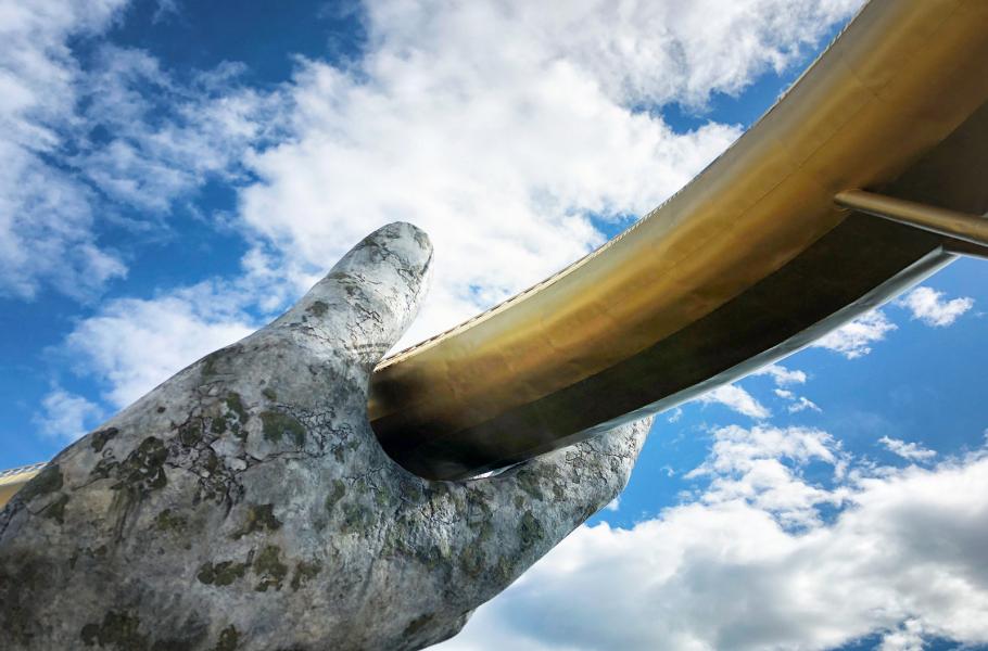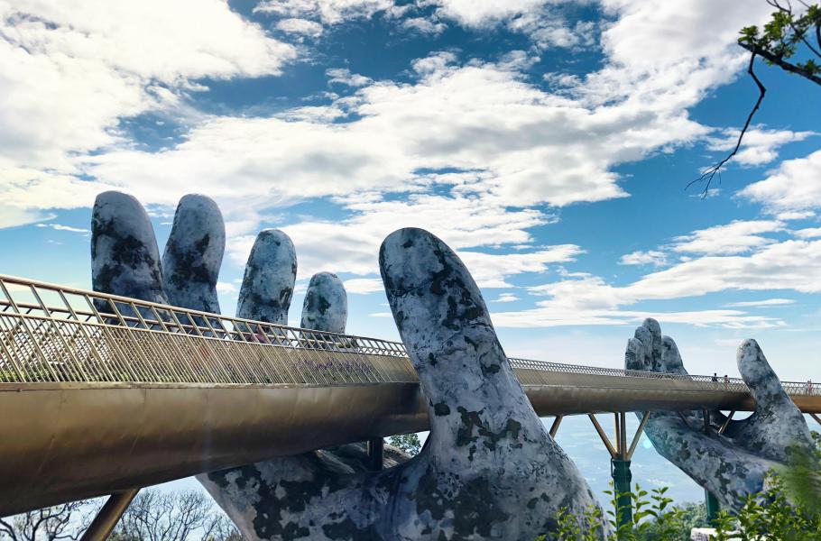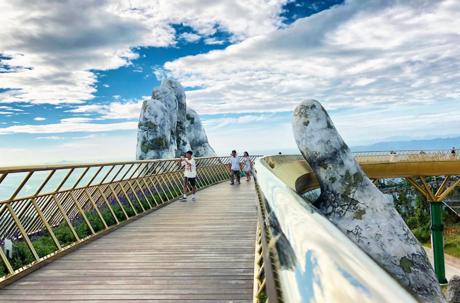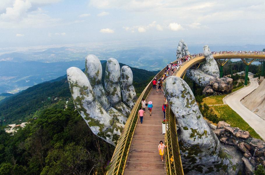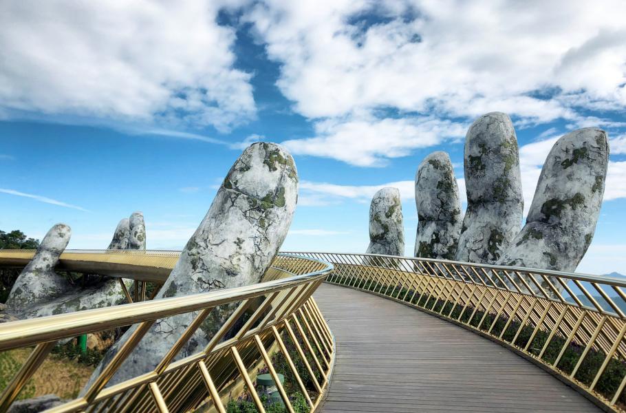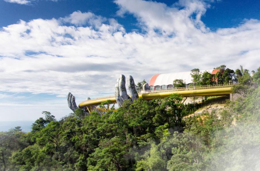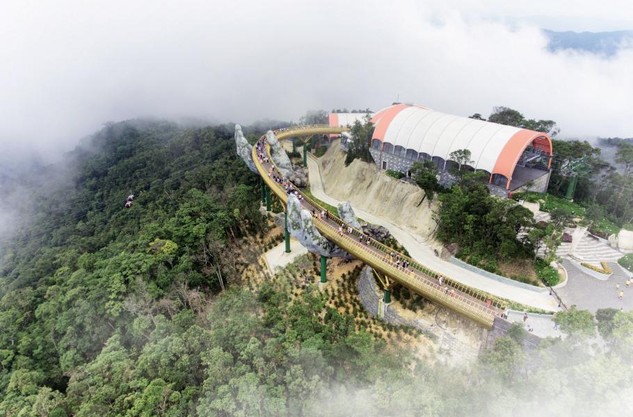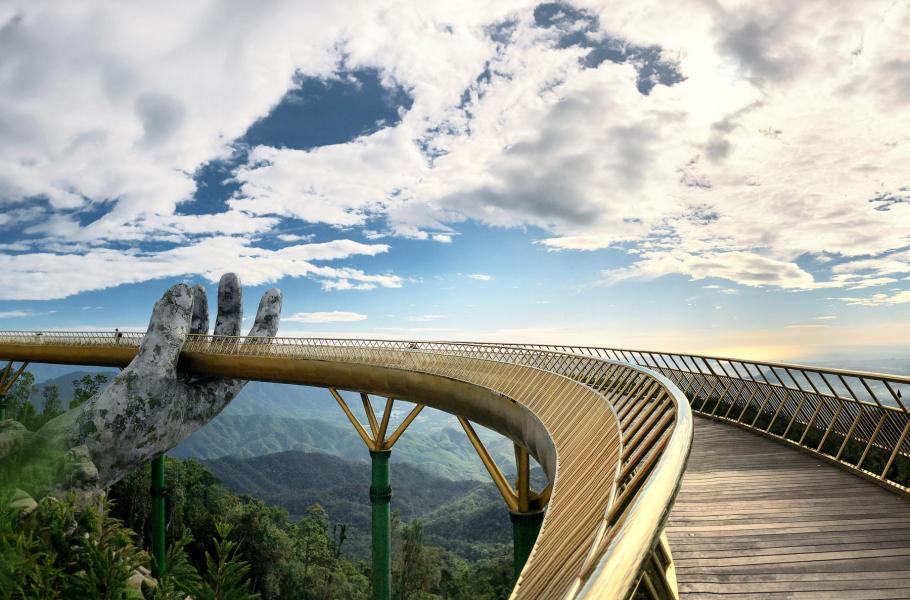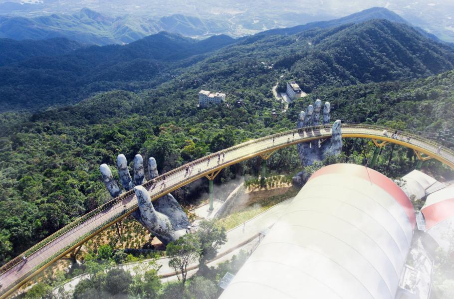 Ve vietnamském horském resortu Ba Na Hills nedaleko města Danang otevřeli nový most: Netradiční stavba vyrostla ve výšce 1 400 m n. m., vine se v délce 150 metrů a nabízí krásný výhled do krajiny. Pod unikátní počin, jenž stál v přepočtu 44 miliard korun, se podepsala společnost TA Landscape Architecture, založená vietnamským architektem Vu Viet Anhem.