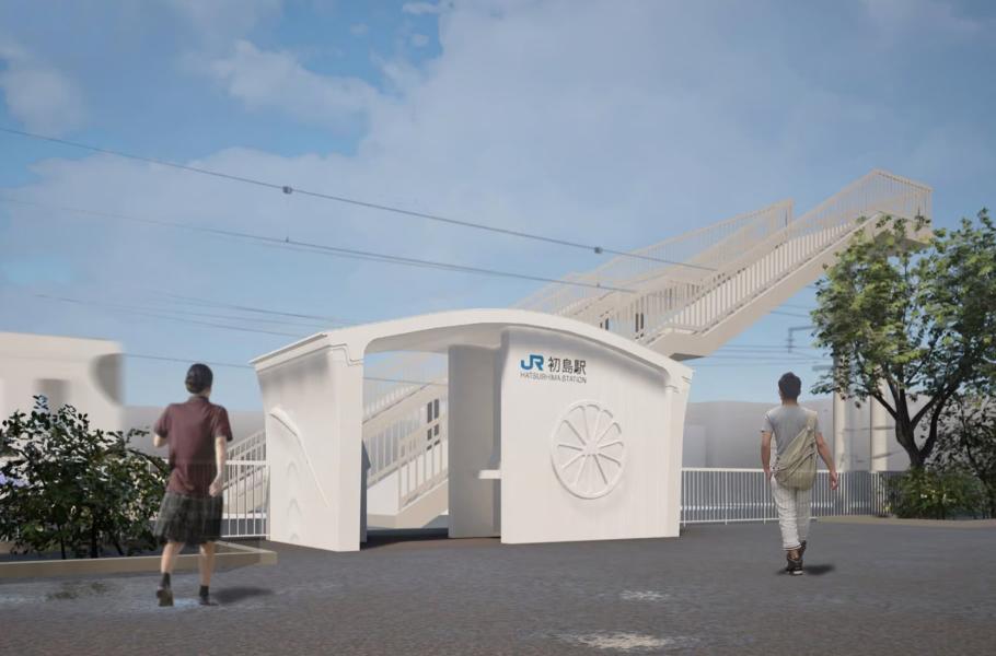Vizualizace 3D tištěné vlakové zastávky Hatsušima v Aridě. (zdroj: West Japan Railway Company, CC BY-SA 4.0)