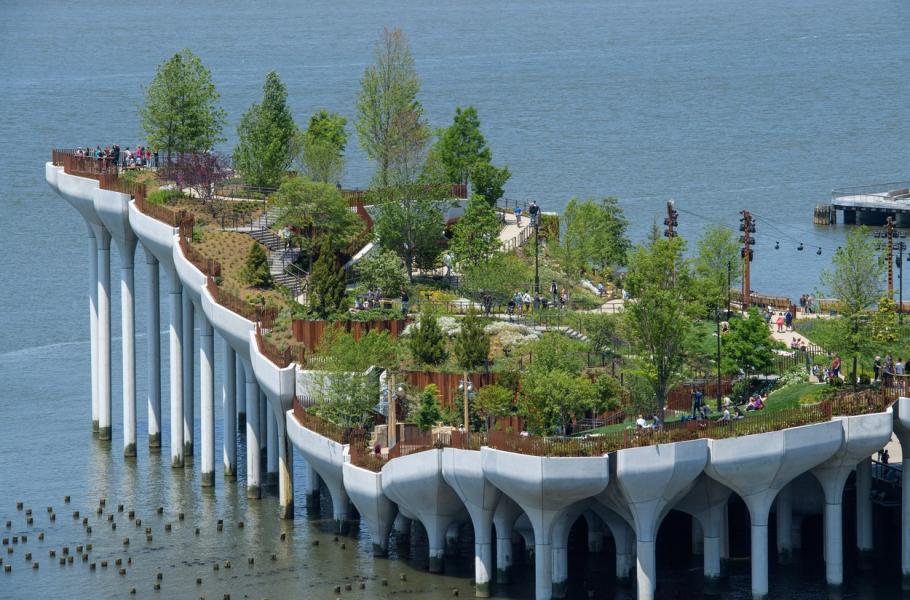Na řece Hudson u západního okraje Manhattanu byl otevřen nový plovoucí park nazvaný Little Island. Výstavba parku, který stojí na pilířích připomínajících květiny nebo houby, vyšla na 260 milionů dolarů