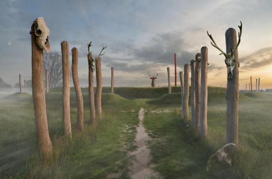 Rekonstrukce podoby nizozemské sluneční svatyně z doby před 4 tisíci lety. (foto: Alexander van de Bunt, CC BY-SA 4.0)