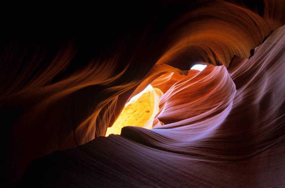 Upper Antelope Canyon není příliš dlouhý. Již po čtyři sta metrech přibližně dvacet až třicet metrů hluboká a poměrně temná soutěska zase končí. Dopoledne sem proniká málo přímého světla, ale dopadající paprsky se od stěn odrážejí a postupně pronikají i do spodnějších partií. Osvětlený pískovec se nejprve rozzáří do hnědých, potom oranžových a nakonec zářivě červených tónů. Přímo před očima dochází k neustálým barevným změnám, kdy se do „uměleckého díla“ zamíchají i bílá, žlutá, nachová, fialová a modrá. S pokročilou dobou získávají barvy na intenzitě.