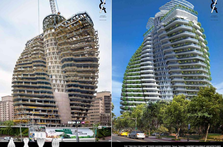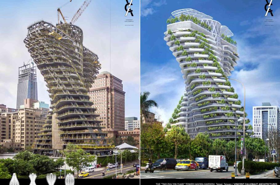 Budova Tao Zhu Yin Yuan (dříve označovaná také jako Zahrada Agora) je dílem pařížského architektonického studia Vincent Callebaut Architectures. Výstavba téměř sto metrů vysokého mrakodrapu, který svým vzhledem připomíná dvoušroubovici DNA, odstartovala již v roce 2013 a o pět let později byla dokončena hrubá stavba. Práce na mrakodrapu tím ale zdaleka neskončily. Podle původních plánů má budova sloužit jako obří lapač oxidu uhličitého – ročně by měla absorbovat přibližně 130 tun tohoto skleníkového plynu. Klíčovou roli v tomto úkolu má sehrát 23 tisíc keřů, stromů a dalších rostlin, vysazených na balkonech a terasách v jednotlivých patrech. Finální „zezelenání“ mrakodrapu má být dokončeno v druhé polovině tohoto roku.