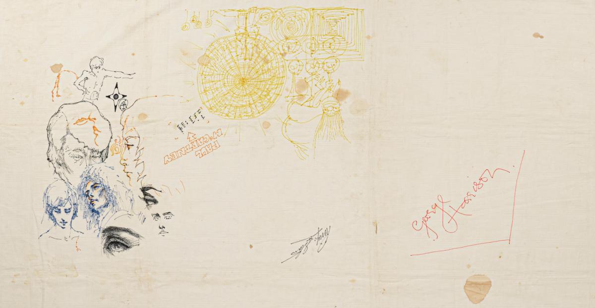 Ubrus pokreslený členy skupiny Beatles. (foto: aukční síň Bonhams)