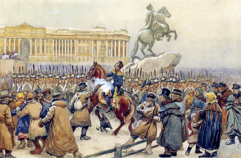 Novým carem se stal Mikuláš I. (vládl 1825–1855) a vojenské jednotky soustředěné v Petrohradě měly 14. prosince (25. prosince podle našeho gregoriánského kalendáře) nastoupit k slavnostní přísaze novému panovníkovi. Výzva k povstání vyšla v noci před přísahou z tajné schůzky vůdců Severního spolku. Velitelé petrohradských jednotek zapojených do vzpoury dali své mužstvo vypochodovat na Senátní náměstí. Nastoupené pluky měly odmítnout přísahu Mikulášovi a vůdci povstání se chystali předat senátu manifest, kterým vyzývali k svržení cara, k likvidaci nevolnictví a zavedení základních občanských svobod. Jednotky měly obsadit Zimní palác a Petropavlovskou pevnost.