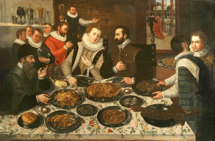 Pro skutečný požitek z jídla nebyla na vánoční hostině důležitá jen chuť pokrmů, ale i dokonale upravená tabule a příjemné prostředí oživené hudbou rožmberských muzikantů či přenosného varhanního pozitivu. Na stole ležel vzácný turecký koberec a teprve na něj se kladl bílý damaškový ubrus. Nad hlavami stolujících byl zavěšen slavnostní sametový baldachýn se zlatými střapci.
