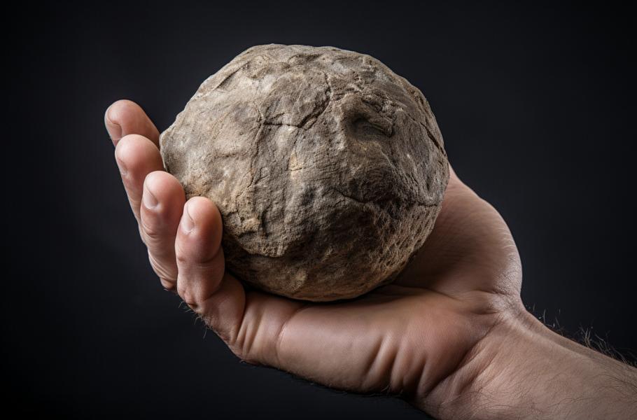 Vápencové koule z naleziště Ubeidiya vznikly zhruba milion let před příchodem člověka druhu Homo sapiens. (ilustrace: Midjourney AI, CC0)