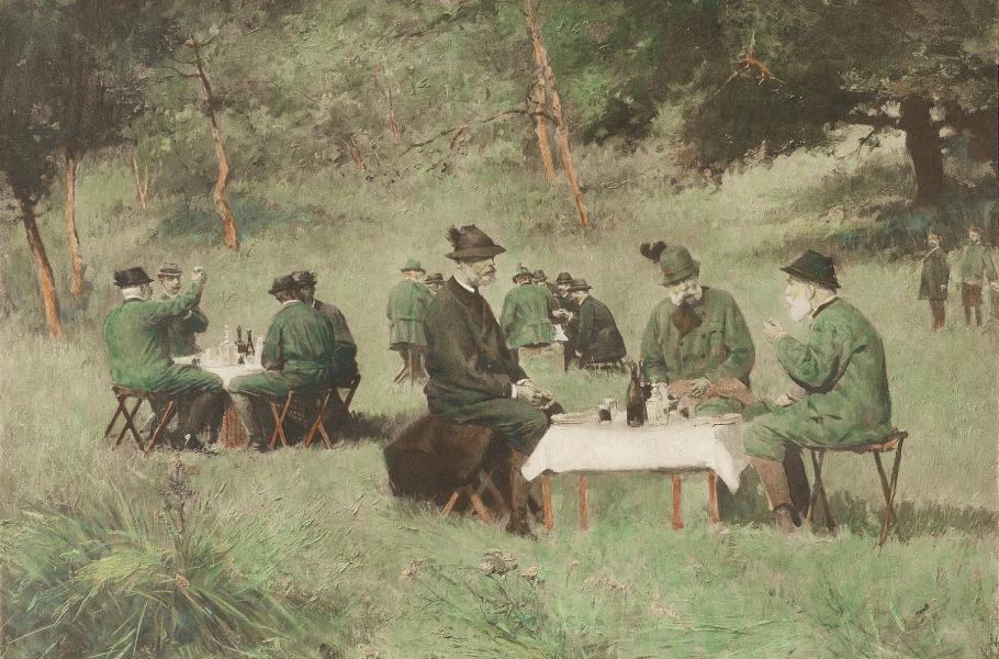 Císař si potrpěl, aby na loveckých túrách bylo vždy zajištěno něco dobrého na posílení. (ilustrace: Wikimedia Commons, Wilhelm Gause, CC0)