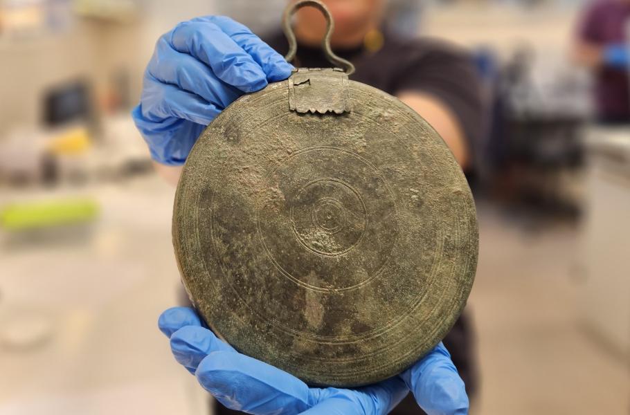 Mladá žena, uložená před 2 300 lety do hrobu s bronzovým zrcadlem, byla zřejmě hetérou doprovázející vojáky Alexandra Makedonského