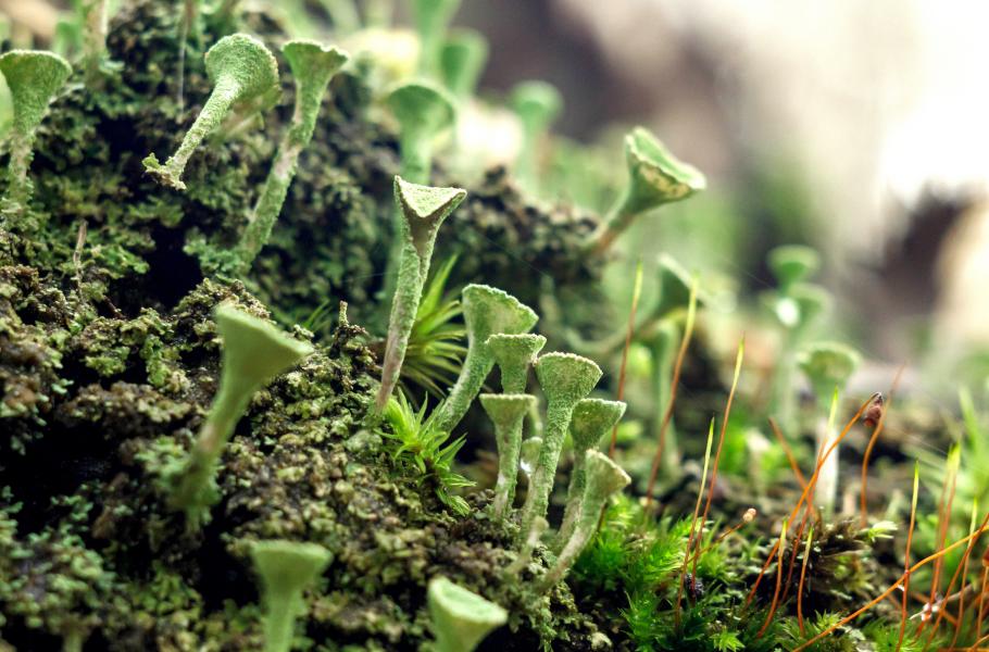Lišejníky představují společenství houby a řasy či sinice, přičemž dosud není zcela zřejmé, zda zmíněné organismy na přežívání spolupracují, nebo jeden druhý vysává. Nejistotu dál umocňuje fakt, že lišejníků existuje až sedmnáct tisíc druhů. Řasy či sinice fungují ve vztahu jako fotobiont, jinými slovy přispívají k „soužití“ organickými produkty fotosyntézy. Mykobiont v podobě houby pak lišejníku dodává vodu i další anorganické látky a mimo jiné zajišťuje prostředí vhodné k růstu. (foto: Shutterstock)