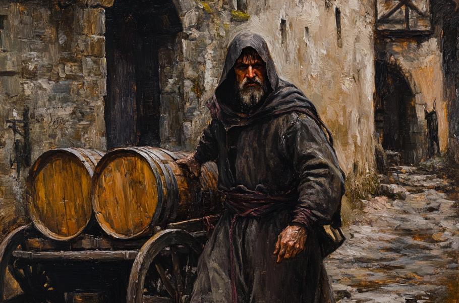 Mnozí městští kati byli současně také rasy a k jejich práci patřilo i vyvážení fekálií. (ilustrace: Midjourney AI, PDM 1.0)