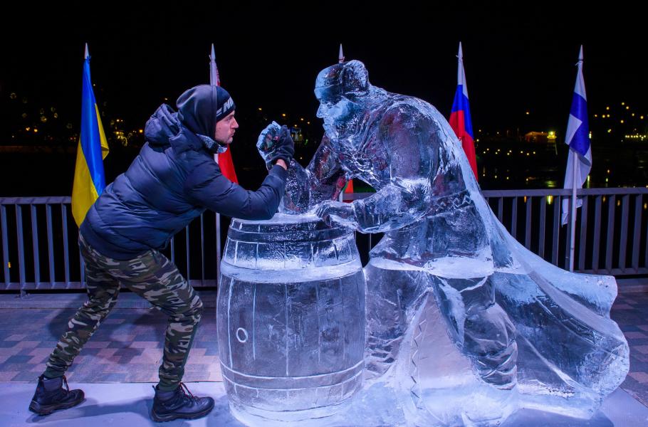 Lotyšská Jelgava pravidelně pořádá největší festival ledových soch v Pobaltí. V roce 2020, kdy vznikla skulptura na snímku, se do akce zapojilo 32 umělců z celého světa a nechyběli ani Češi. (foto: Profimedia)