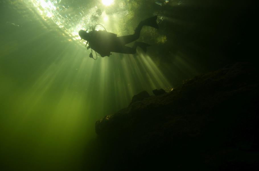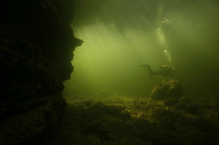 Proplouváme kolem mohutných kmenů, zbytků cest a dokonce staveb, které stávaly na břehu řeky ještě v dobách, kdy její hladina nebyla zvýšena jezem elektrárny. V místech zúžení mezi podvodními ostrovy proud znatelně sílí. Představuji si, jak to tady musí vypadat v době jarního tání nebo po bouřce. Šedesát minut pod vodou se zdá být jen chvílí. To jsem zažívala v začátcích potápění, kdy vše bylo velmi nové a neotřelé. Po více než 800 ponorech to vnímám znovu právě v této magické řece.