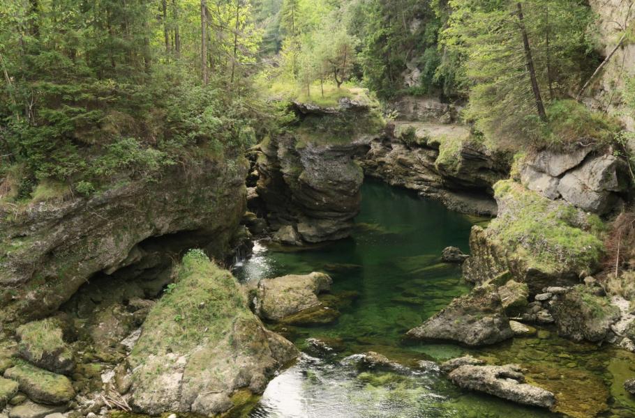 Pod vodní elektrárnou Siebenbrunn leží další zajímavé místo řeky. Hluboké úzké tůně s vodopády a členitými ostrovy jezdí obdivovat nejen potápěči. Z dřevěného mostku mohou turisté sledovat milovníky adrenalinu, kteří v neoprénech skáčou z asi čtyřmetrové výšky do jedné z tůní. Vzhledem k malé šířce je místo velice citlivé na zvýšení průtoku vody. I potápěči se zde cítí lépe s lehčí výstrojí, bez potápěčského přístroje. Bez neoprénu to ale nejde. Teplota vody dosahuje v pozdním létě nejvýše 18 °C, po většinu roku bývá mnohem studenější.