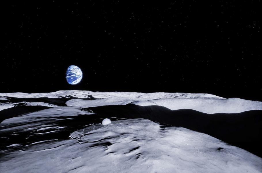 Kromě vodního ledu a ideálních míst pro získávání solární energie čekají na lunárních pólech i úchvatné výhledy na modrou planetu. | zdroj: NASA (CC BY-SA 4.0)