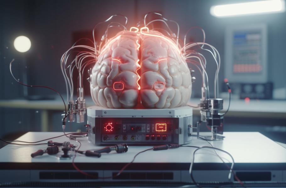 Brzy se stal na umělém uspokojení natolik závislým, že si v průběhu tří hodin poslal do hlavy až 1 500 výbojů. Jeho libido nakonec dosáhlo takové úrovně, že při pokusech o ukojení chtíče neodolal ani ženě. (ilustrace: Midjourney AI, CC0)