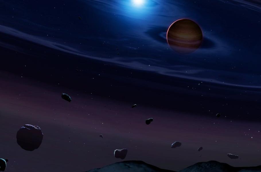 Jay Farihi z britské univerzity University College London (UCL) a jeho spolupracovníci nedávno objevili těsnou dvojhvězdu SDSS 1557, vzdálenou přibližně 1 000 světlených let od Země, kterou obklopuje disk tvořený kamennými a železnými asteroidy. Dvojhvězdu SDSS 1557 tvoří bílý trpaslík, jehož hmotnost odpovídá asi 45 procentům Slunce a ještě menší hnědý trpaslík.