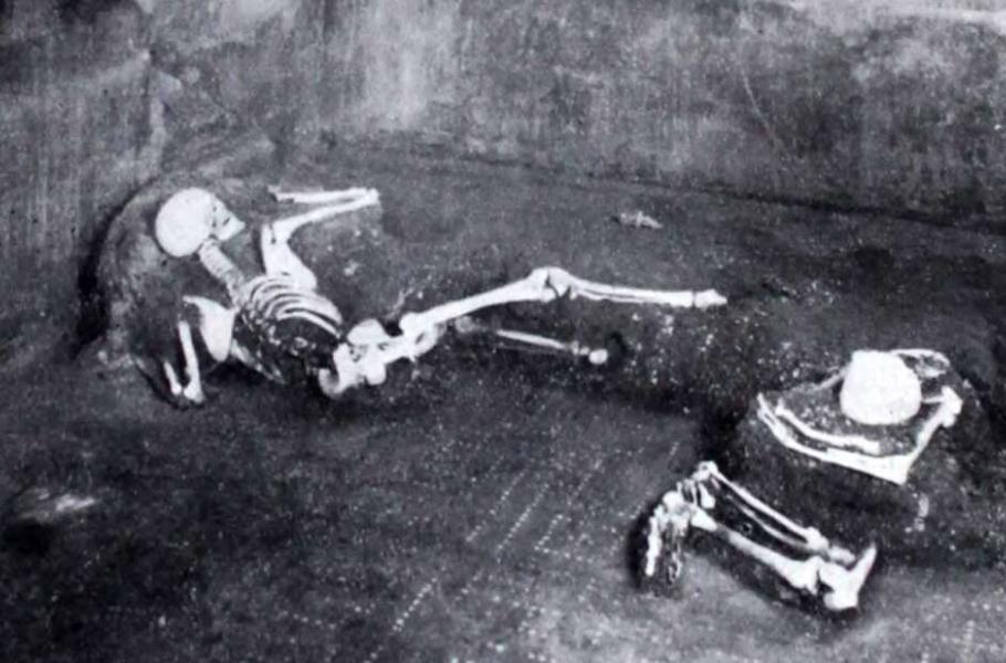 Lidské pozůstatky obětí erupce v domě „Casa del Fabbro“, včetně muže, jehož DNA vědci přečetli.