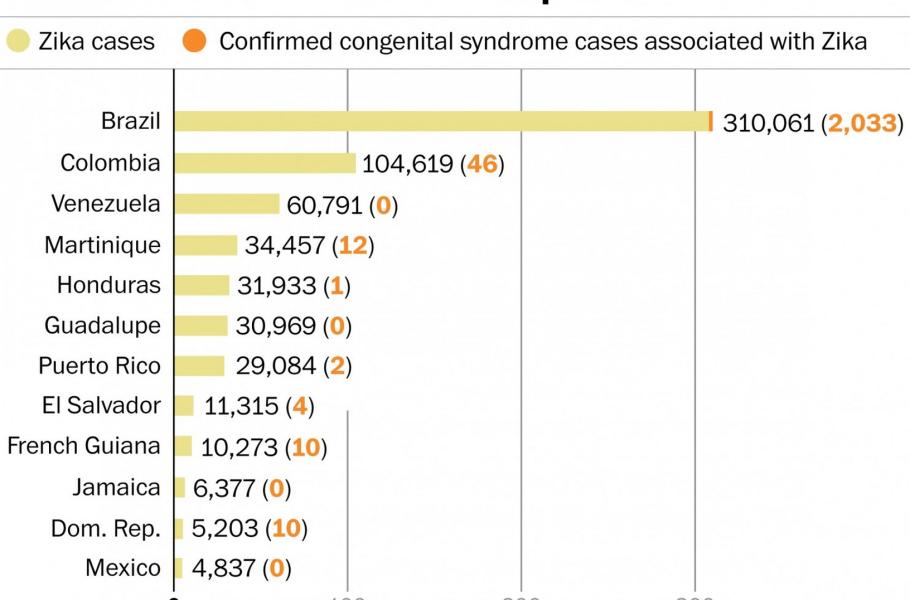 V Brazílii bylo v loňském roce nakaženo virem zika více než 300 tisíc lidí. Závažná onemocnění spojená s tímto virem se objevila u 2 033 pacientů. V předchozích letech to přitom bylo okolo 150 případů ročně, přičemž skutečné číslo bude podle brazilských odborníků vyšší, přibližně okolo 500 případů ročně. V Kolumbii, která měla druhý nevyšší výskyt nakažených (více než 100 tisíc) to ale bylo jen 46 potvrzených případů, přestože zde onemocnělo téměř 20 tisíc těhotných žen. Statistika ukazuje, že virus zika zřejmě nemůže být jediným původcem závažných neurologických onemocnění.