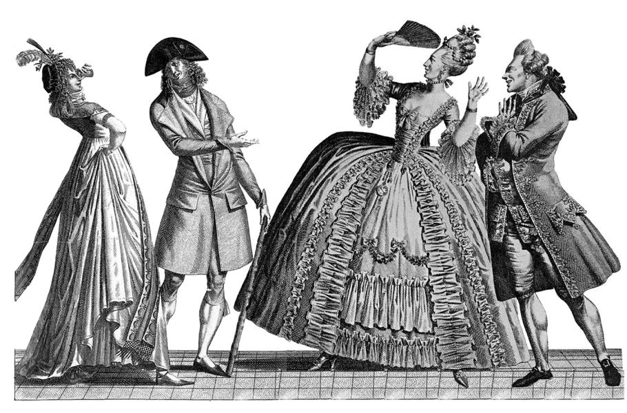 Proměna francouzské módy, ke které došlo během pouhých 15 let (1778 až 1793). (ilustrace: Wikimedia Commons, CC0)