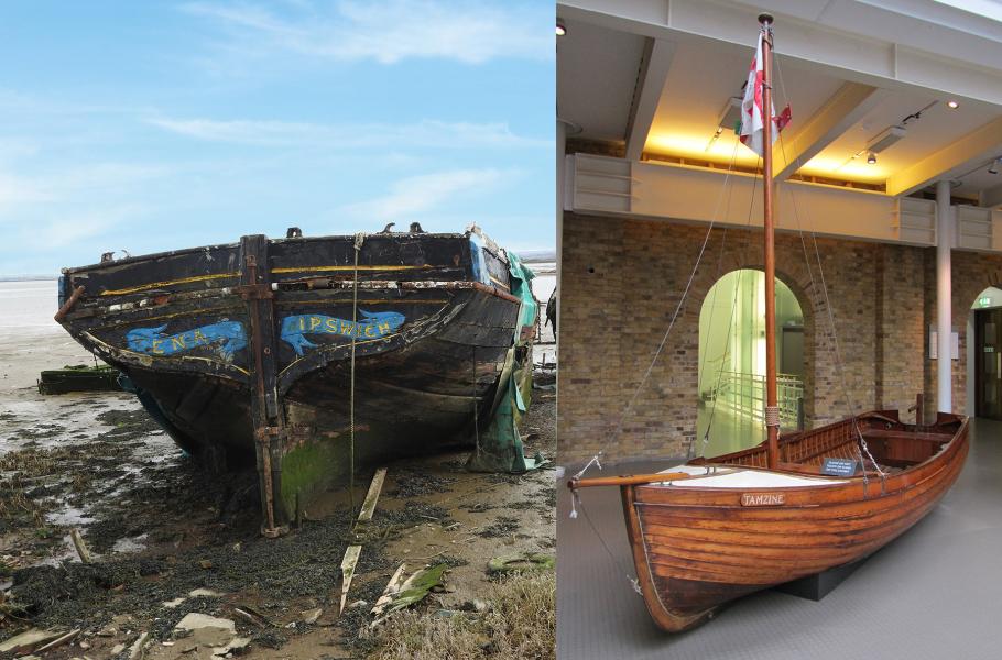 Loď Ena během evakuace posádka opustila, ale na pláži plavidlo našli vojáci a přeplavili se na ní na ostrovy. Tamzine (vpravo) byla nejmenší známou lodí, která se zúčastnila operace Dynamo.