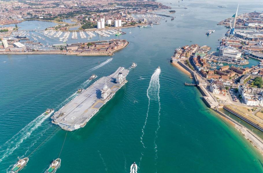 Největší britská válečná loď HMS Queen Elizabeth připlula v neděli do přístavu v Portsmouthu. Obří letadlová loď je dlouhá 280 metrů a váží 65 tisíc tun. Na své palubě může nést až 40 letounů F-35B Lightning II, Chinook nebo vrtulníky Merlin a 1600 členů posádky. HMS Queen Elizabeth byla na vodu spuštěna přesně před rokem a stále ještě prochází sérií testů.