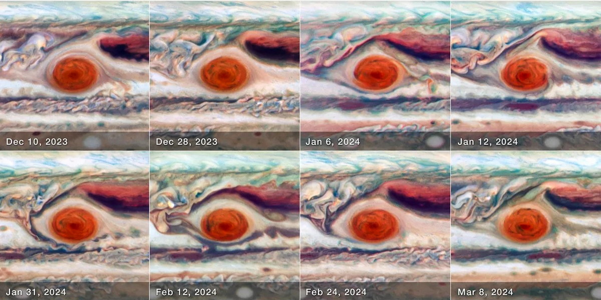 Hubbleův dalekohled pozoroval Jupiterovu skvrnu během 90 dní od prosince 2023 do března 2024. Když si vědci prohlédli získané snímky rychle za sebou, s překvapením zjistili, že tato atmosférická struktura není tak stabilní, jak by se možná zdálo. Podle všeho se chvěje jako obrovská hrst želatiny.