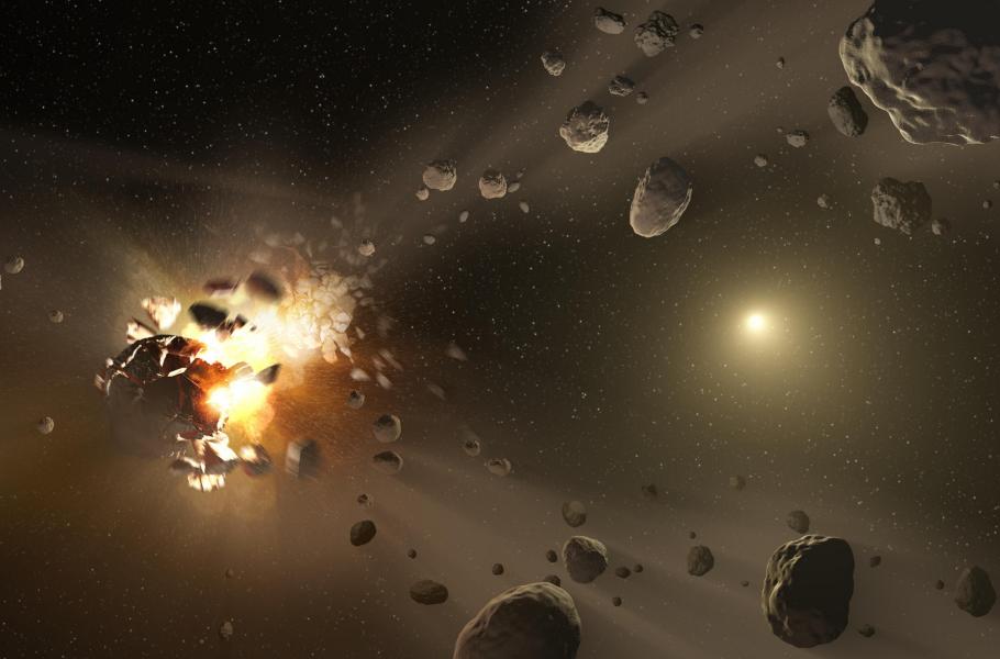 Asteroid, který se před tisíci lety rozpadl blízko Slunce, po sobě zanechal prachový proud, jenž by letos v červenci mohl vyvolat meteorický roj v atmosféře Venuše. (ilustrace: NASA/JPL-Caltech, CC BY 4.0)